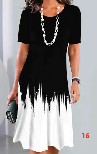 ΚΛΑΣΣΙΚΟ ΣΤΡΟΓΓΥΛΗ ΛΑΒΗ ΚΑΙ ΚΟΡΥΦΑΙΑ ΜΑΝΙΚΙΑ: Αυτό το φόρεμα έχει διαχρονική στρογγυλή λαιμόκοψη και κοντά μανίκια, καθιστώντας το μια ευέλικτη προσθήκη σε κάθε γκαρνταρόμπα. Ιδανικό για τις πιο ζεστές ημέρες, προσφέρει άνεση και στυλ σε ένα.